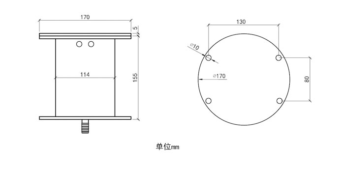 高160mm,底板φ170mm,φ主體114mm