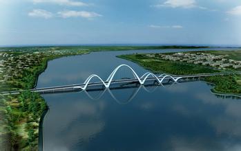 沈陽動漫橋(現(xiàn)名伯官大橋,以下均稱伯官大橋)橫跨渾河,北接棋盤山,南連沈撫新城,是沈陽東陵區(qū)內(nèi)南北聯(lián)系的重要樞紐。大橋所銜接的道路等級為城市主干道,設(shè)計車速為60km/h,橫斷面布置為雙向六車道及兩側(cè)人行道。該橋是我國首座六跨中承式飄帶形提籃斜拱橋,如圖1.1所示。主橋跨徑為35+84+120+88+68+35=430m;北岸引橋為5*35=175m;南岸引橋為4*35+4*35=280m;引橋共長455m,全橋總長885m,橋?qū)?2m。圖1.2、1.3分別為大橋立面布置圖和平面布置圖。